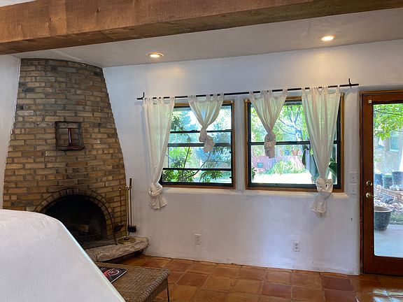 Wood-burning fireplaceKiva fireplaceStucco wallsGranite kitchenette countersSpanish tile floorsLots of greeneryPrivate deck with views