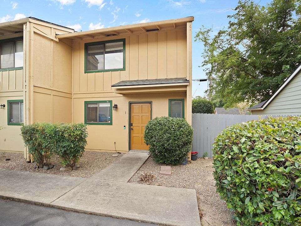 Don't miss this end unit condo with two parking spaces right out front! The kitchen flows into a spacious dining and living area, with a side window that brings in extra natural light and direct access to the patio. Laminate flooring runs throughout the main level, with carpet on the stairs for comfort. Upstairs, the primary bedroom features its own balcony and walk in closet. Main bathroom includes tile floors, a shower/tub combo, and an updated sink and counter. Recent upgrades include a newer roof, water heater, and fence! Outside, enjoy your private fenced backyard and patio!