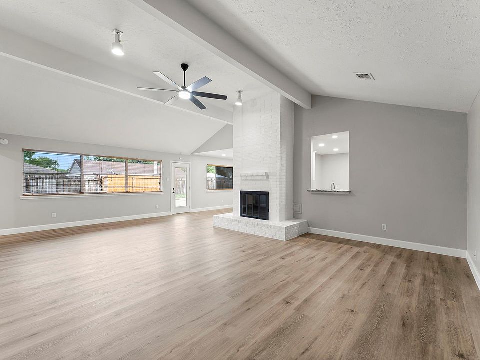 Adorable single story-4 bed home with a pool in the heart of Richmond! This home offers a perfect blend of comfort and backyard retreat with many features included. Great curb appeal at the entrance of the home will welcome you and your guests. Tall ceiling in the living area with lots of windows overlooking the pool in the backyard. Enjoy the focal point of the wood burning fireplace in the living room. Enjoy the kitchen with granite counters, updated subway tile and an island for plenty of counter space. Easy access to the dining area off the kitchen. The primary bedroom is at the back of the home with ensuite bathroom including double sinks and a walk in closet. The three secondary bedrooms are at the front of the home and all have easy access to the secondary bathroom that also has two sinks. Brand new roof, new insulation, new pool equipment and motor, new water heater and new LVP.