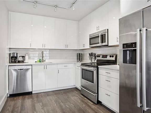 The condo features modern finishes, high ceilings and a contemporary kitchen with stainless steel appliances and quartz countertops. The open floor plan allows for flexible use as a primary residence, high-performing short-term rental or a hybrid owner-occupant investment.