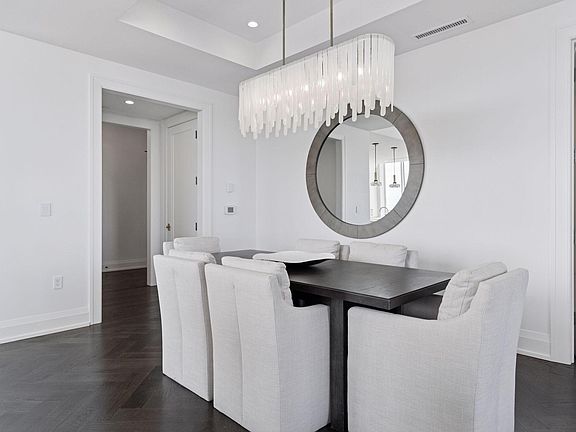 Parquet floorsDual vanityHigh end appliancesMarble backsplashChic upgraded lightingCustom cabinetryWell appointed kitchen