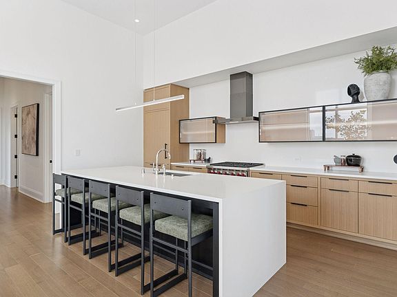 Sleek contemporary styleLibrary with gas fireplaceBay windowEnormous windowsSecond bedroom suiteStunning arched windowUpgraded flooring