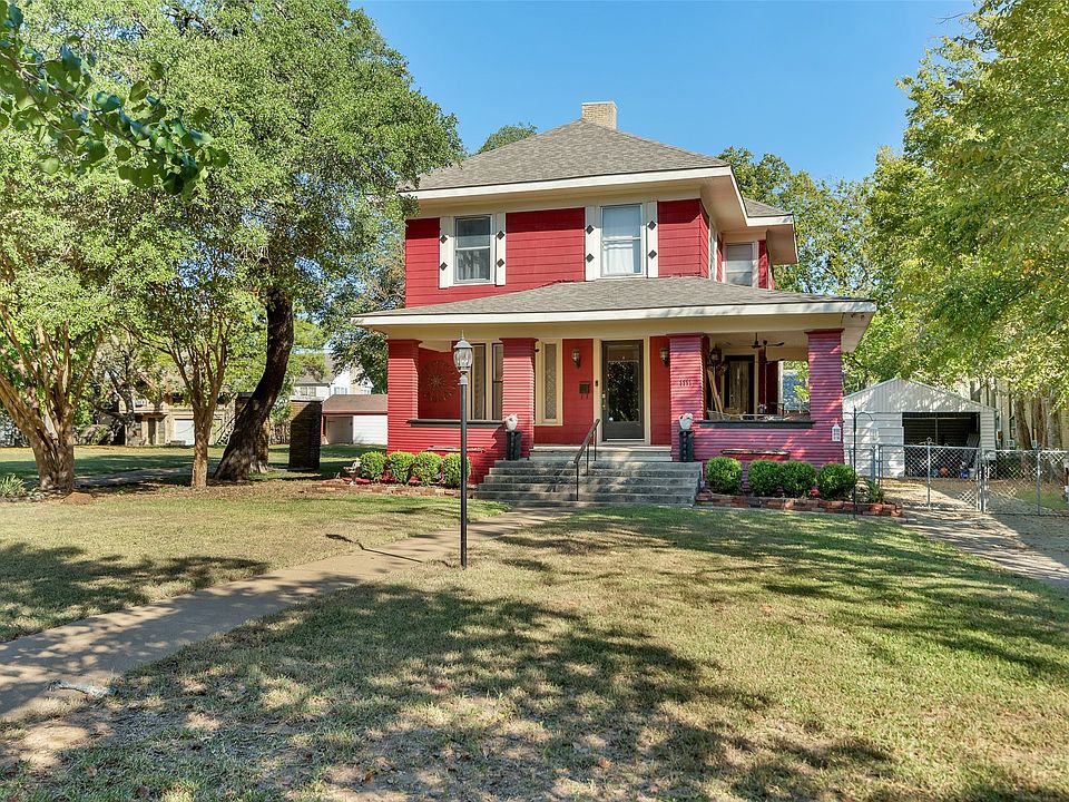 Step back in time with this charming 1911 home that’s full of original character and timeless appeal. Tucked away on a quiet street just minutes from Denison, Texas’s historic downtown, this house has a warmth that welcomes you the moment you arrive. Inside, you’ll find beautiful built-ins, stained glass windows and doors, and multiple fireplaces that make each room feel unique and full of history. The original hardwood floors add to the home’s inviting atmosphere. Enjoy mornings on the large front and wrap-around porch, perfect for rocking chairs and good conversations. Out back, there’s a deck, a greenhouse, and a storage shed which offers plenty of space for gardening, hobbies, or just relaxing outdoors.