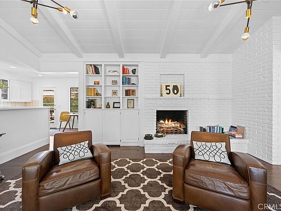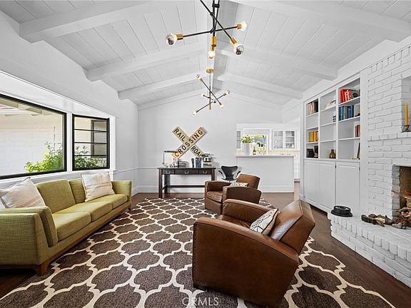 Custom built in 1955 by Harold Moomaw this midcentury home is a classic one of a kind home with original hardwood floors, open beam ceilings and 2 fireplaces. Located on the coveted Sharon Road/ River Lane loop, a mile long of custom homes on large lots. Just the right size this home has both a Living room and a Family room. She sits way back on the lot away from the street and under a mature Sycamore tree. The circular drive delivers you to the original turquoise front door. Step inside and you will discover a home filled with light but also warm and welcoming. The Family room has a vaulted open beam ceiling, floor to ceiling brick fireplace with built-in bookcases and a bay window. It opens to the all white kitchen with glass uppers. The Living room is straight ahead and has large picture windows overlooking the pool. It too has a brick fireplace. Refinished wood floors in most rooms including the kitchen. A nook opens to a covered patio. Just off the kitchen is the laundry room and a half bath. Also with direct garage access. Step out back and find a flagstone patio, built-in bbq, a small lawn area and a classic pool straight out of Hollywood with a spa. There are 3 good sized bedrooms including the main bedroom with dressing area and private bath. Tons of built-in storage throughout the home. If you are looking for a home that gives a feeling of zen this is it. Imagine napping under the sycamore looking up through the branches to the sky or lounging next to your pool & spa. Start and end your day on the small covered patio while enjoying your garden. This home looks like you are living in a 1955 Sunset magazine Ranch home. Come and enjoy not just the home but an amazing neighborhood filled with longterm neighbors who have put down roots in the community. Fisher Park is part of the greater Floral Park neighborhood, one square mile of custom vintage homes. Experience the opposite of Irvine with one of a kind homes that were intentionally built for a specific owner. Can anyone say Pool party? Host your friends and family all Summer long.