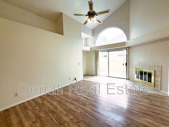 No Application Fees! Well-maintained single level 2 bedroom, 2 bathroom Chandler townhouse in Lakeside Villas. This home features vaulted ceilings, neutral paint, and a combination of tile and laminate flooring throughout with no carpeting and ceiling fans in every room provide comfort year-round. The spacious living room includes a cozy fireplace and direct access to a private patio. The kitchen offers a breakfast bar, separate pantry, ceramic cooktop range, dishwasher, and refrigerator. The primary suite features a walk-in closet, dual sink vanity, and a separate bath. Additional storage space is available in the storage room off the patio. Residents enjoy access to the refreshing community pool, offering all the fun without the upkeep. Centrally located with easy access to Loop 101, US 60, and Loop 202 for a quick commute anywhere in the Valley. Close to shopping, dining, and entertainment options at Chandler Fashion Center, local parks, and Chandler Schools.