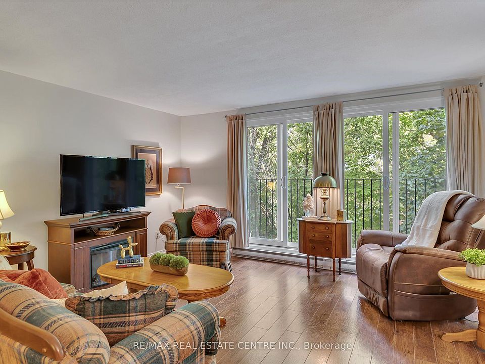Surrounded by Nature & Tranquility! Pets Allowed! Welcome to The Maples, a highly sought-after condominium in Peterborough's desirable north end. This well-maintained adult-lifestyle building offers a secure and peaceful living environment, set on a private, well-treed lot across from the Otonabee River. Located on the second level, This second-level, 2-bedroom plus den, 2 bath unit has been freshly modernized with newer windows, flooring, trim, light fixtures & more. The Juliette balcony overlooks a serene forest setting, providing a peaceful retreat. Residents enjoy a secure entry system, heated underground designated parking, a storage locker, and access to excellent amenities including a common lounge, gym, and library. The building is smoke-free and small pet-friendly, making it an ideal choice for those seeking comfort and convenience. The well-kept landscaped grounds feature ample outdoor parking for a second vehicle and guest, a covered entrance, and an outdoor sitting area backing onto mature greenspace. Conveniently located close to shopping, Riverview Park, and public transit, this condo offers both tranquility and accessibility. Don't miss the opportunity to experience this exceptional lifestyle schedule a viewing today!
