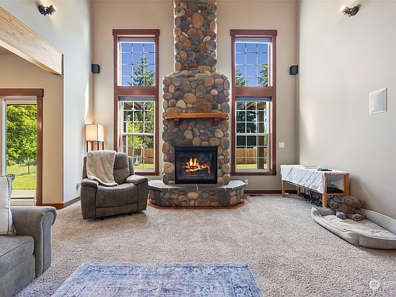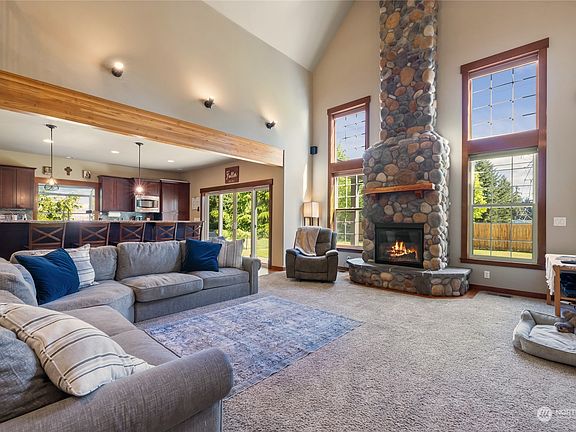 Luxurious Northwest living awaits with this custom home down a wooded, private drive in Puyallup! The Grand Entrance greets you as walk into the living area with soaring ceilings, balcony, and custom stone hearth. Solid wood beams and millwork bring the PNW indoors! Chef's kitchen: granite countertops, solid wood cabinetry, double oven/stainless steel appliances. This home boasts not one, but two master suites w/en suite bathrooms! Primary on main floor w/ 3 more upstairs + bonus room with vaulted ceilings & ready for movie projector! The expansive 1,028 sq/ft garage has room for all your cars and toys. Dual Zone Heating / Cooling. Wired for gated entry, generator, EV charger, R/V, you name it - it's here! No HOA!