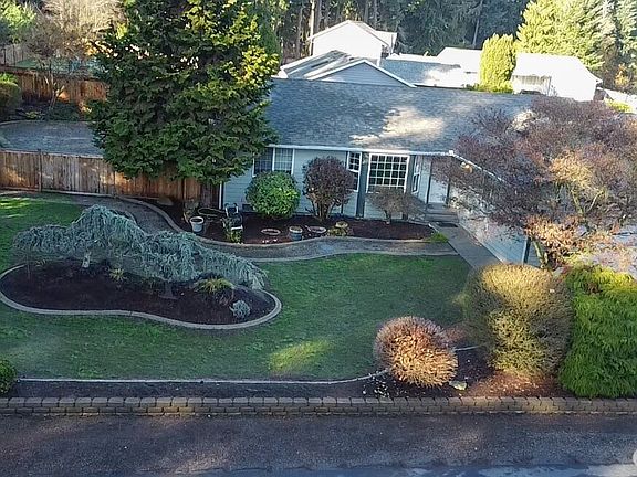 Move-in ready and close to great schools, parks, and shopping! This well-kept 3-bed, 1 3/4 bath rambler sits on a spacious corner lot and features new landscaping, sprinkler system, newer roof, hot water tank, and a brand-new electrical panel. The bright kitchen has one of kind acrylic counter, gas stove, and SS appliances.The kitchen eating area opens to a sunny patio and large backyard with nice deck and covered salt water hot tub, perfect for gatherings. Enjoy skylights, and a pre-wired sound system. The primary suite offers roomy lighted closet system with pull out racks. The laundry area includes washer, dryer, great cabinets. Newly seeded yard with fresh landscaping and clean cement edging completes this move-in ready home!