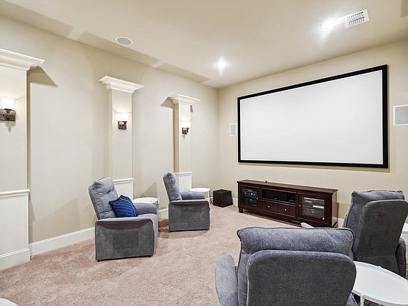 Outdoor swimming poolDedicated dining roomCovered patioCinema roomPool tableFoosball tableLake views