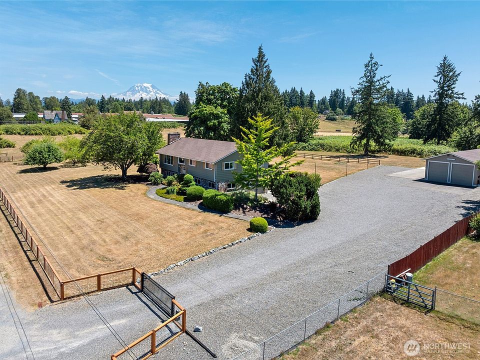 Luxury and sustainability in Fully Remodeled ON or OFF GRID Graham home. Olympic and Rainier views. Motorized gate, new front fence & solid Alder door welcome you to a home where every detail has been thoughtfully updated. All new kitchen w/stainless appliances, updated bathrooms, luxury vinyl & tile flooring, new windows/doors and cozy pellet stove. Outside: fenced garden, 14-tree fruit orchard, 8-person spa, new Trex deck, sport court for multi-sport fun. Detached 32x42 finished shop, 16x28 carport, and 20-ft storage container. Sustainable features include Solar Power w/battery backup, new well pump and water line, septic pump. Insulated garage doors, cedar shutters and fresh paint interior & exterior. Stylish, efficient & move-in ready!