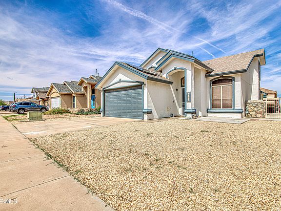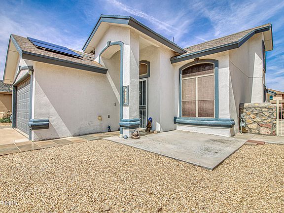 WELCOME HOME! This stunning, move-in ready residence perfectly combines comfort, style, and efficiency. Step inside to a bright, open floor plan with soaring ceilings and seamless flow between the kitchen, dining, and living areas. The beautifully upgraded kitchen features stainless steel appliances, including a double oven and a 2023 LG French door refrigerator, all less than two years old. Upstairs, a spacious loft offers endless possibilities for a home office, playroom, or media space. Enjoy huge energy savings with owned solar panels installed in 2023, seller pays only about $35 per month for electricity. Outside, relax or entertain year-round under the generous covered patio, complete with a hot tub for unwinding after a long day. Ideally located near top-rated schools, shopping, dining, and just minutes from Fort Bliss, this home truly has it all. Don't miss your chance to make this exceptional property yours, schedule your showing today!