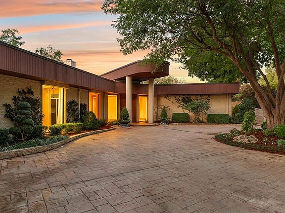 Discover a rare architectural gem on 1.53 acres of pristine lakefront property. Designed by renowned architect Pintu Kahn, this 3 bedroom, 3.5 bath, true mid-century modern home is a showcase of artistry and innovation. The homes design features striking angles that create optical illusion, a signature of Kahn's designs. The entire back of the house is lined with floor to ceiling windows offering uninterrupted views of the tranquil lake, pool, expansive covered patio, boat and deck and verandas off of living rooms and bathrooms. Step inside to find oak flooring, high ceilings, a one of a kind sunken bar, perfect for entertaining. Enjoy two expansive living areas, formal dining area and a true mid century modern kitchen complete with sub zero refrigerator. Retreat to your private primary suite with serene lake views and doors to the pool area. The primary bathroom has double vanities, large beautiful soaking tub and large walk in closet. Guests enjoy secondary bedrooms, with large walk in closets and jack and jill bathroom. The outdoor living is a dreamy escape in both the front and back yard. Adorned with beautiful landscaping, a butterfly garden, many different types of trees, and beautiful lake views and access, this home not only offers a lake property but an entertainers dream area for large events with your own personal gated entrance. This home has so many amazing features it is more than a residence, its a statement of design, lifestyle and timeless elegance. Schedule your private tour today to experience this mid century modern treasure. There's nothing else like it in okc.