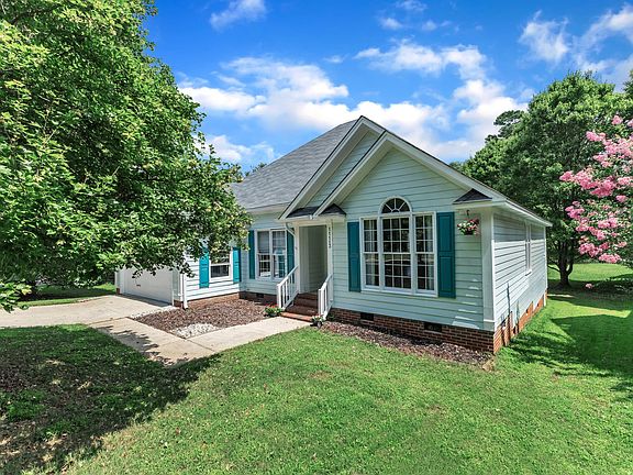 Great floorplan for big family/friends Holiday get togethers - very spacious & feels bigger than 1900sf. Vaulted ceilings throughout formal living and dining and into the family room that is open to the kitchen and breakfast area. Well maintained split bedroom plan - large 2 car sheet rocked garage. Elevated deck, great for viewing the night sky and watching deer walk up. Kitchen features center island with breakfast bar, granite countertops, and stainless-steel stove, microwave, refrigerator, and black dishwasher. Walk in pantry. Vaulted ceiling carries into the primary bedroom, bath has soaker tub, separate shower and quartz countertop w/double vanity, & walk in closet. Two secondary bedrooms off hallway shares bath w/double vanity. Walk in crawlspace great for storage. HVAC 2020, roof 2016, fresh interior paint 2024, new carpet in bedrooms. Harrington Grove is conveniently located within miles to RDU Airport, 540, and lots of shopping and restaurant options. Neighborhoods within Harrington Grove have mature landscaping. Membership available for purchase for HG Swim and Racquet Club. (Needs: Primary shower surround needs replacing, companies will not come out just to replace one section. Also, white streak on ceiling in kitchen can be remedied by color matching to existing ceiling color.)