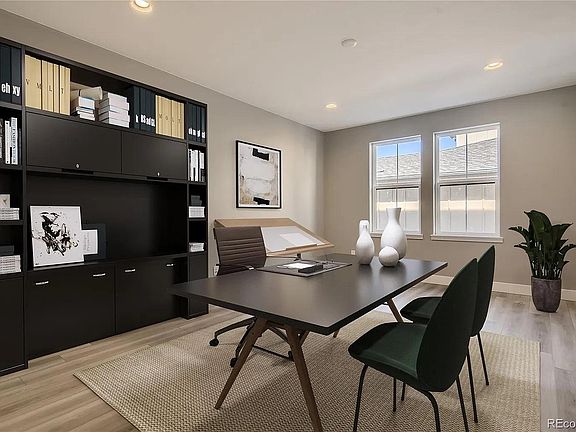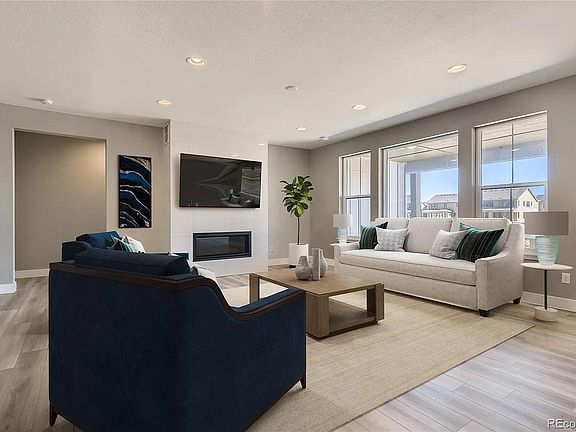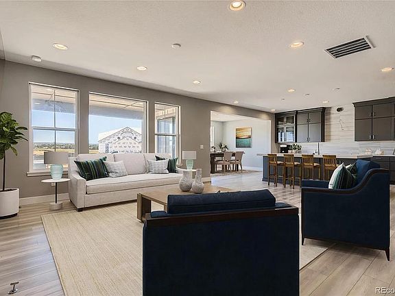 Beautiful Main floor primary bedroom in the desirable Solstice Community by Shea Homes. Solstice is surrounded by Chatfield Reservoir on 3 sides of the community and acreage parcels on the 4th side. This main floor primary bedroom two-story, 5 bedroom, 4 bath,3 bay garage, full finished basement, stainless steel gas appliances, design features include: Luxury Plank Shaw Polaris Plus Lighthouse flooring and stairs, tile floors in the bath and laundry rooms, Della Terra Denali quartz kitchen counters with full tile backsplash, 12x24 Thamar Polished Bianco Lasa tile full height fireplace surround, and Yorktown Gilmore Maple Painted Earl Gray cabinets.