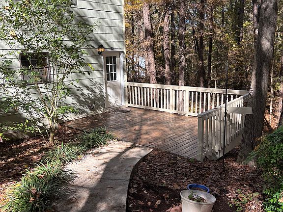 Located in a quiet, wooded, secluded lot with a balcony off the bedroom, and a large deck at ground level. Refrigerator, microwave, dish washer. Water included in rent. Two bedroom one and a half bath freshly painted through out, new carpet in bedrooms, .Wood flooring downstairs. 1/2 Storage building included. Close to McKee, bakery, Amazon, and Volkswagen.
