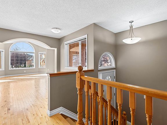 Truly a rare find, this beautiful end-unit bi-level townhouse offers 1,800 sq ft of well-maintained living space and is move-in ready. Sunny, bright and inviting, the south-facing living room is filled with natural light and features vaulted ceilings, a corner gas fireplace with mantle and an open flow to the dining areas. The central kitchen provides plenty of storage and countertop space, complete with stainless steel appliances. The upper level includes three bedrooms and two full bathrooms, with the primary suite offering a walk-in closet and 4-piece ensuite. Two of the bedrooms and both bathrooms have been newly updated with modern flooring. The lower level features a large recreation room, an additional bedroom, a 3-piece bathroom, laundry and direct access to the attached double garage.Conveniently located near LRT, schools, shopping, and major routes, this home combines comfort, function, and convenience in one desirable package.