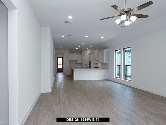 Home office with French doors set at entry with 11-foot ceiling. Open kitchen offers center island and corner walk-in pantry. Dining area opens to spacious family room with wall of windows. Private primary suite includes bedroom with wall of windows. Dual vanity, corner garden tub, separate glass-enclosed shower and large walk-in closet in primary bath. Abundant closet space and natural light throughout. Covered backyard patio. Mud room off two-car garage.