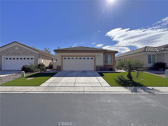 Beautiful Home in Gated 55+ Community – Sun City Del Webb. Welcome to this charming and meticulously maintained 2-bedroom, (a den that could be 3rd bedroom), 2-bathroom home in the highly desirable Sun City Del Webb, a premier 55+ gated community in San Bernardino County. Offering comfort, convenience, and an active lifestyle, this residence is perfect for those seeking a peaceful yet vibrant environment. Enjoy a functional floor plan with a spacious den/office, indoor laundry room, and tile flooring in the kitchen, entryway, and baths. The primary suite features a private bathroom with a walk-in shower, and the kitchen boasts oak cabinets and Corian counter tops .Located near Ashwood Golf Course , residents also enjoy resort-style amenities:Two clubhouses (Aspen & Mariposa) Fitness center, indoor/outdoor pools, spas, walking trails, pickleball courts, and more. This little charmer is located on a quiet -cul-de-sac and everything you need is minutes away; Cinemark movie theater, Target, restaurants of all kinds , Stater Bros grocery store , Home Depot , Lowes Home Improvement ,Victor Valley Community College , and Mojave Narrows Regional Park.
