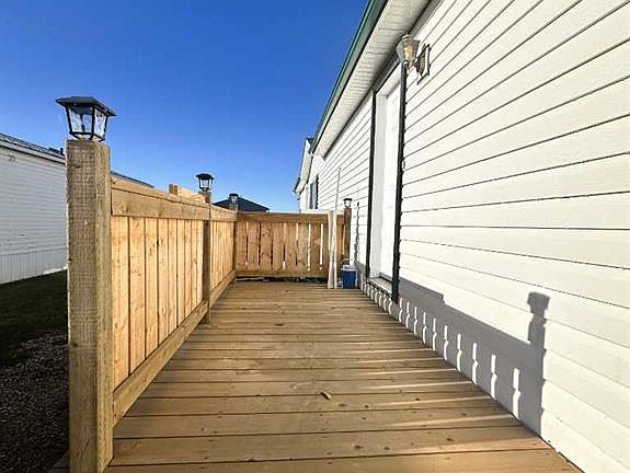 Price Adjusted to Just $232,400! – Most of the Furniture is now INCLUDED! Incredible value and move-in ready! The sellers are including most of the furniture (excluding mattresses, box springs & frames), making this the perfect turnkey opportunity — especially for first-time buyers! This beautifully updated single-wide mobile offers unbeatable comfort in a fantastic location — with a playground right next door! Step inside to discover bright, modern living with new shingles, stunning stainless steel appliances, and a newer washer and dryer set. The open-concept layout features vaulted ceilings, updated flooring, and plenty of natural light, creating a fresh and spacious feel. Don’t miss the stylish feature wall that adds a touch of character through the dining and living areas! The kitchen is designed for both function and flair, offering abundant cabinetry, a corner pantry, a large window, and a sleek modern backsplash. The thoughtful floor plan is ideal for families, featuring two generous bedrooms and a full bath on one end, and a private primary suite with ensuite on the other — plus tons of storage throughout. Set on durable steel screw piles for long-term stability, this home was relocated to its current site just last year and features a solidly framed perimeter with 2x4s and OSB, ensuring secure, stay-in-place skirting. Well maintained and move-in ready, this home blends modern comfort, affordability, and a welcoming neighborhood — close to Clairmont School, parks, and playgrounds. A wonderful place to call home!