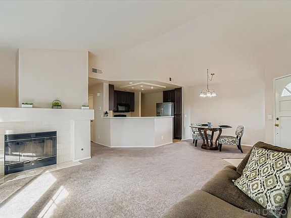 Top-Level Condo with Panoramic Views in Belsera, Tierrasanta! Welcome home to this beautifully maintained 2-bedroom, 2-bath condo in the sought-after Belsera community of Tierrasanta. This top-floor corner unit offers panoramic views, a private balcony, and a spacious living area with vaulted ceilings that create a bright, open feel. The upgraded kitchen features Quartz countertops and a newer refrigerator, while the primary suite offers an ensuite bath with Quartz countertops and a generous walk-in closet. Comfort is a priority here—enjoy the extra-large, newer HVAC system (installed in 2021) that keeps the home cool and efficient year-round. Additional highlights include a full-size washer and newer dryer, an attached one-car garage, and an assigned carport space. The Belsera community offers resort-style living with two pools, spas, volleyball courts, and scenic walking trails. Located just minutes from Mission Trails Regional Park, shopping, dining, and convenient freeway access—this home combines modern upgrades, low-maintenance living, and a peaceful natural setting. Come see why Belsera is one of Tierrasanta’s most loved communities!