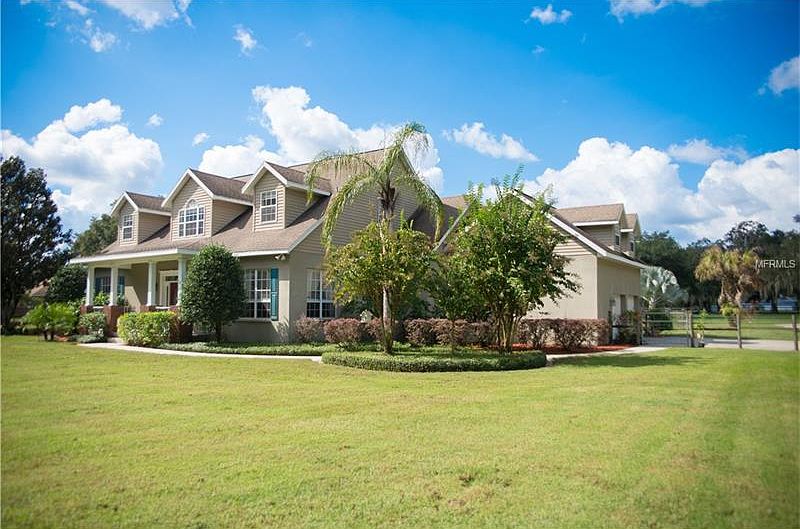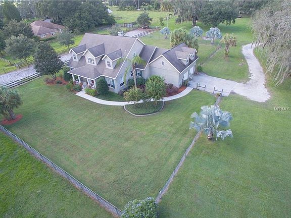 ESTATE HOME NESTLED AMONGST GRANDFATHER OAKS! Gorgeous 7-acre equestrian property with 3,691 square foot home located in the Fishhawk area. This custom built, 4 bedroom, 3 bath with office is beautifully maintained. The family room features a soaring two-story cathedral ceiling, stately fireplace and opens to the kitchen. The kitchen boasts granite counters, solid wood cabinetry, walk-in pantry, breakfast bar and nook. Located on the main floor, the spacious owner's suite features a garden tub, separate shower and double sinks. One of the secondary bedrooms is so large that it could be used as a bonus room. The covered screen lanai stretches across the majority of the back of the home and leads to the dog fenced area that encircles the home. An awesome barn awaits the horse enthusiast. With 8 stalls, tack room & feed room, there is room to take on boarders if desired. Located just a block away is Chito Branch Preserve where you can ride the trails for hours. Come, bring your horses and experience all this special property has to offer!