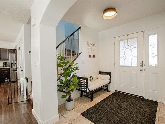 Spacious tiled entryBright open-concept main floorWrap-around countertops with seatingAmple cabinetryStainless steel appliancesCozy fireplaceHalf bath
