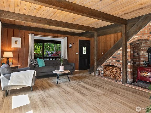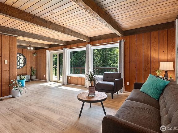 Tucked among towering firs, cedars, and lush ferns, this cozy A-frame offers comfort, character, and room to roam. Set on beautiful acreage, complete with resident deer, this home features multiple decks and a spacious family room, perfect for entertaining. Inside, wood beam ceilings, exposed brick, and a woodburning fireplace add rustic charm. Enjoy year-round comfort with central A/C and peace of mind with new electrical and well filter system. Outside, your private retreat includes a 20x20 shop/detached garage, perfect for hobbies, storage, or additional parking. Just minutes from shopping, dining, and parks, this gem blends serene country living with everyday convenience!