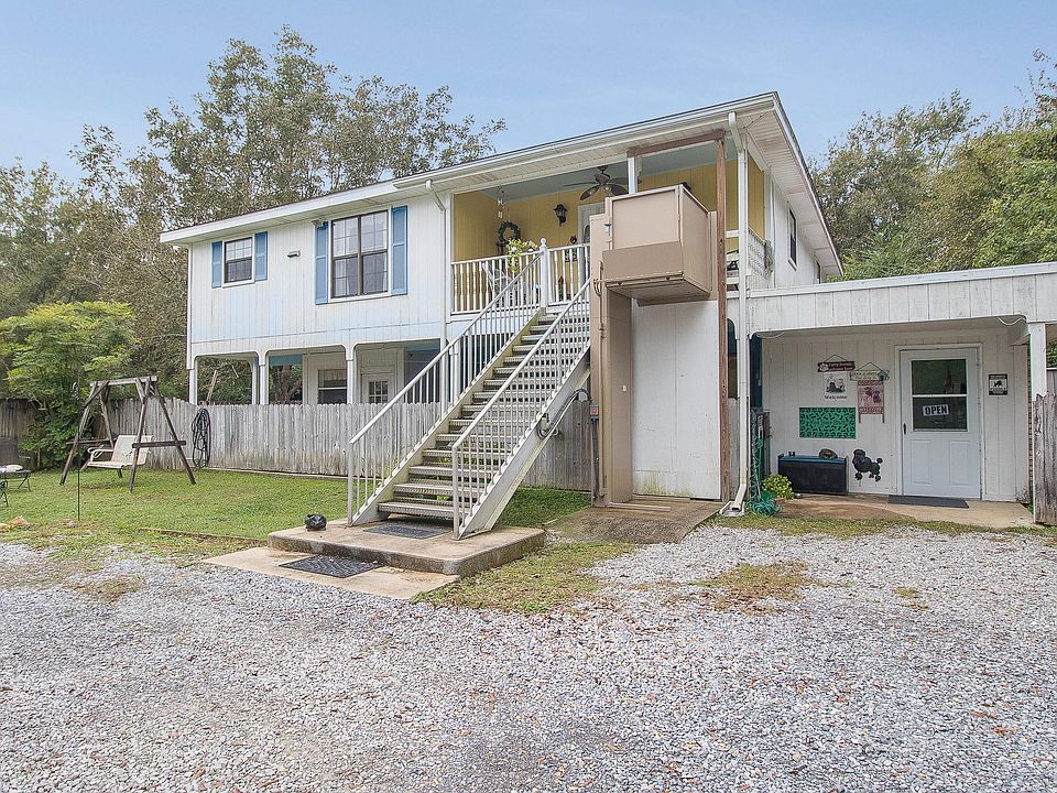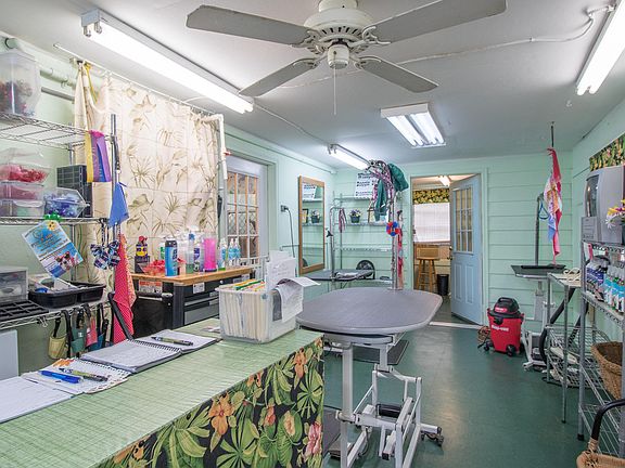 This place is neat as a pin. 1.6 acres. Live above your business. Below is a kennel and dog grooming business. 16 concrete dog indoor/outdoor runs. Fenced back yard, 2 storage sheds,double carport. Home also comes with an exterior elevator. Upstairs has 2 large bedrooms, 2 baths, open floor plan and interior utility room.