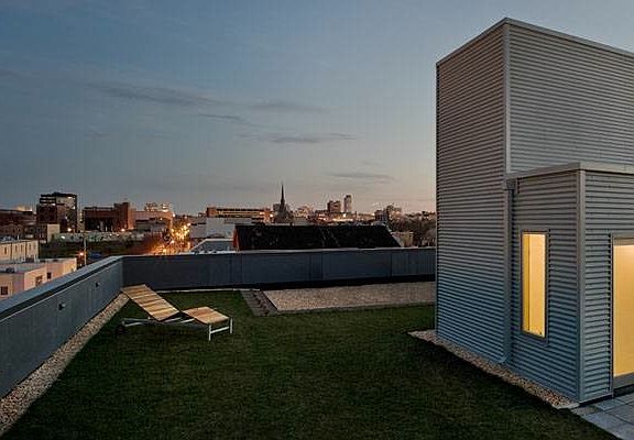 Sky Park Condos is a 10-unit boutique condo building offering modern design and green amenities. This elevator building features open floor plans with expansive windows that take advantage of available natural light. The finishes are top-quality and include bamboo wood floors, quartz counter tops, Italian cabinetry, and stainless steel appliances. All units include one on-site parking space and a storage locker in the basement of the building. Tenants can enjoy the fresh air and sun on the roof meadow, a grass covered green roof deck offering panoramic views of the city skyline, bridges, and surrounding neighborhood.