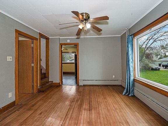 A Real Fine Place To Start! This fantastic 3 bdrm/1 ba traditional home has been well cared for over the years, and is ready for new owner's. Large expensive updates have been done in the past 5 years such as: New Roof (2017), New Siding (2020), Bath Remodel (2022), and brand new Weil McClain Boiler (2025)! There is also an abundance of newer vinyl windows. All the big stuff! The home itself, entering the front door, is an enclosed mud room/porch, giving way to a bonus room, good sized living room, formal dining room, main floor bedroom, and Huge expansive kitchen with pantry nook. Upstairs are the other 2 bedrooms, and the recently updated full bathroom. The basement is a full solid poured foundation, with a brand new boiler, laundry area, and a Bonus large finished room. Outside is a rear firepit, and a one stall garage sitting on 1 and 1/2 city lots. With a lot of the big expensive things done in the last 5 years, this is an excellent opportunity at owning a great home!!