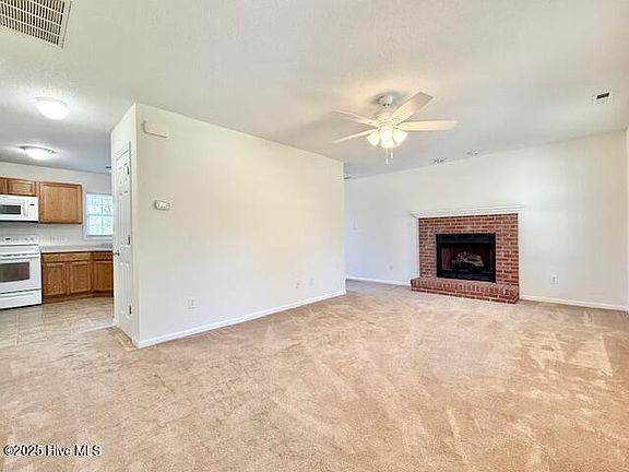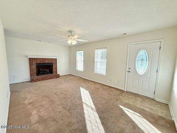 Welcome to this charming 4-bedroom, 2.5-bathroom single-family home offering comfort, convenience, and plenty of space for everyday living. From the moment you arrive, you'll be greeted by a welcoming covered front porch, perfect for relaxing with your morning coffee. Step inside to a bright and inviting living room featuring a ceiling fan and cozy fireplace, ideal for both gatherings and quiet evenings at home. The eat-in kitchen boasts upgraded appliances, abundant counter space, and generous cabinetry, making meal prep and entertaining effortless. Just off the kitchen, you'll find a convenient laundry room for added functionality. The master suite is a true retreat, complete with a walk-in closet and ceiling fan. The adjoining master bathroom includes a tub/shower combination and a lovely vanity, offering both practicality and style. Each additional bedroom includes a ceiling fan and ample closet space, ensuring comfort for family members or guests. Step outside to enjoy your private oasis a fully fenced backyard with a spacious deck, perfect for grilling, entertaining, or unwinding at the end of the day. A garage with door opener provides extra storage and convenience. This home is ideally located with an easy commute to all area military installations, as well as shopping, dining, and schools. Don't miss the opportunity to make this well-maintained home yours!