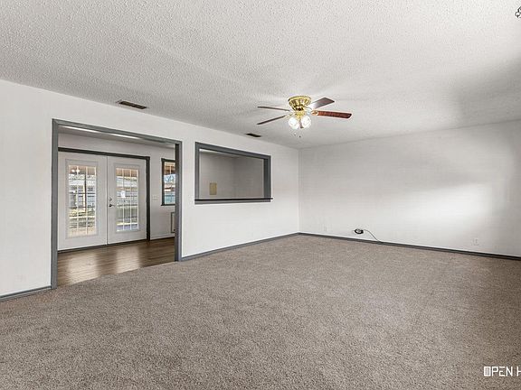 Wide covered patioUpdated flooringUsable outdoor spaceFresh carpetPractical layoutKitchen with great storageMature shade trees
