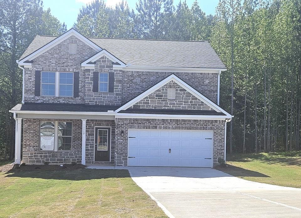 The Baxley Plan built by My Home Communities! Quick Move-In! Perfectly located in the Vineyard Park Community, just 10 minutes from the Atlanta Motor Speedway! This elegant two-story home offers 4 spacious bedrooms, 2.5 baths, and modern farmhouse charm. Enjoy a thoughtfully designed open floor plan featuring a large kitchen with a granite island, breakfast area, and views of the oversized family room-perfect for gatherings. The luxurious primary suite includes a spacious tiled shower, a double vanity with granite counters, and walk-in closets. Step outside to a covered patio and enjoy the serene surroundings of this level, spacious lot. Community amenities include a clubhouse, playground, sidewalks, and streetlights, creating a welcoming and vibrant neighborhood. Ask about our $3,000 in closing costs available through our preferred lender for contracts binding by 2/28/2025, this is an opportunity you won't want to miss. Schedule your tour today and make this your forever home!