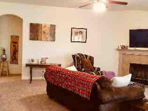 Beautiful 4bed open concept floor plan , high ceilings, beautiful living room w/ fireplace & separate formal dining. The front entry leads to formal dining featuring hand scraped hardwood floors. The sun-filled living room opens to breakfast area & leads to kitchen featuring recessed lighting, beautiful wood cabinets, breakfast bar & pantry. Master boasts high ceilings, en-suite bath w/ walk-in shower & soaking tub. The large backyard has a wrap around privacy fence & looks out to green views.