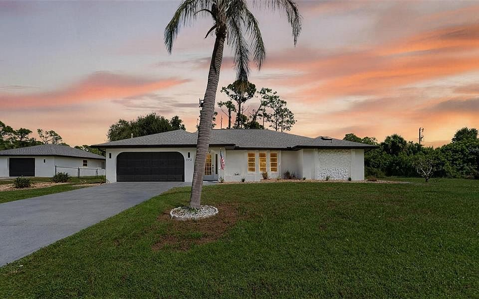 Exceptional opportunity to own a fully remodeled pool home on an expansive 0.69-acre triple lot. This 3-bedroom, 2-bath residence offers over 2,000 square feet of updated living space and combines modern upgrades with rare lot size and features. Inside, the home has been thoughtfully renovated with brand-new flooring, quartz countertops, stainless steel appliances, custom built-in blinds, and a spacious built-in laundry room. Both bathrooms have been completely updated with contemporary finishes. Major system upgrades include both brand-new roofs, a brand-new AC system, and updated PVC plumbing, providing complete peace of mind for years to come. Step outside to your private backyard oasis featuring a sparkling pool, oversized yard, and mature surroundings. The standout feature is the custom detached garage with air conditioning, epoxy flooring, and designer lighting — the perfect mancave, workshop, or creative workspace. With every detail addressed inside and out, this property is truly move-in ready. Conveniently located near shopping, dining, schools, and just a short drive to Gulf beaches, this is one of the most unique and desirable homes available in Port Charlotte.