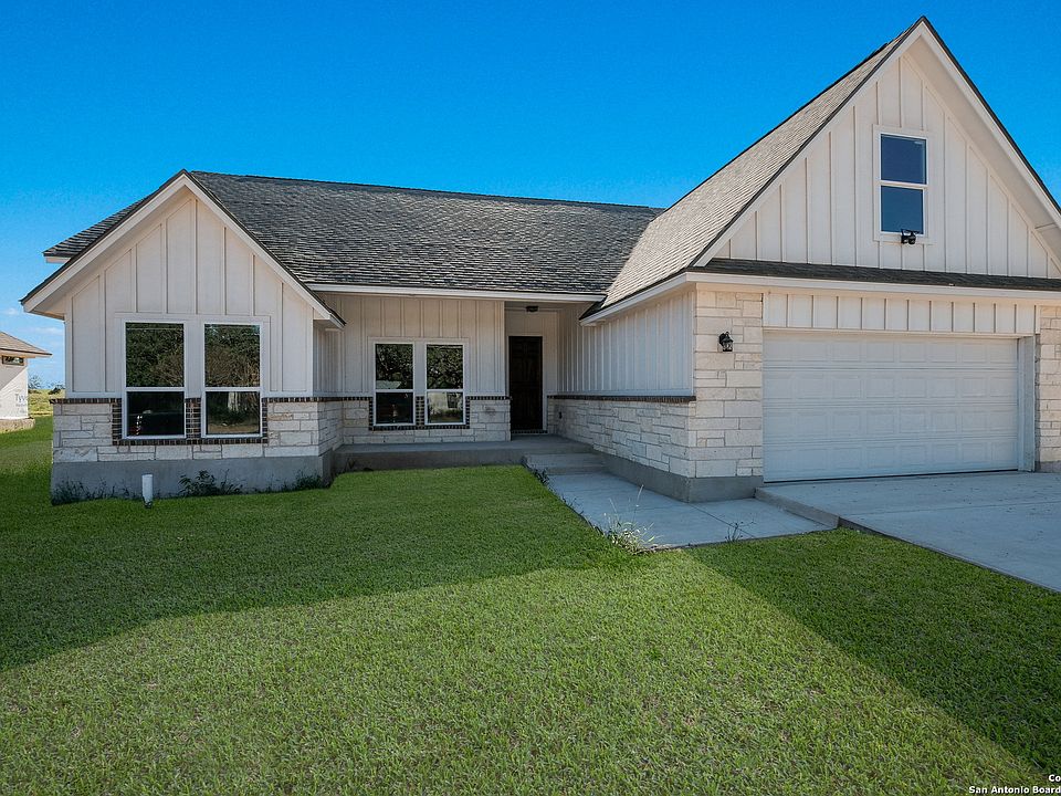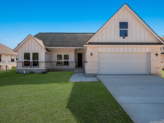 1112 Devine Dr is a new construction home and conveniently located in the Cactus Flats Subdivision in Devine. Custom built with gorgeous curb appeal and situated on a 1/3-acre lot. Skillfully designed floorplan boasts a welcoming entryway leading to the spacious family room with vaulted ceilings, a fireplace, and plenty of windows providing natural light. The dining room and kitchen are open to the family room and offer a center island and ample cabinets and counter space. The primary bedroom has vaulted ceilings, a generous walk-in closet, and double vanity. There are two other bedrooms with large closets and a shared bathroom. A centrally located laundry room and an upstairs bonus room over the 2-car garage ready for buildout completes this gem of a home!