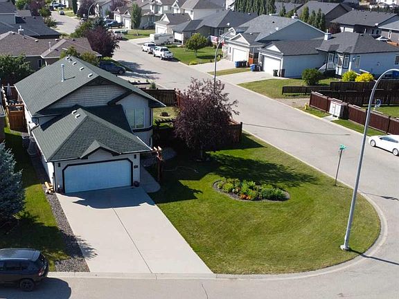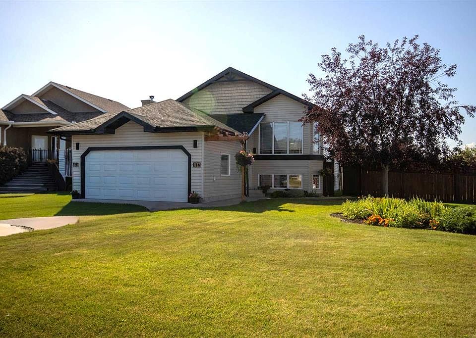 Beautifully renovated 2004 Laebon built bilevel with 1,216 sq. ft. plus a finished basement, and heated double attached garage. Pride of ownership shows with new flooring, lighting, fresh paint, quartz counters, Gemstone exterior lights & more. The bright, open layout offers a spacious primary with dual closets, plus two large bedrooms in the lower level with in-floor heat. Step outside to a beautiful, family-centered backyard with two decks, lower patio, hot tub, fire pit, raised flowerbeds & functional landscaping. Extras include central air, gas BBQ hookup, 8’x10’ shed, & water softener. Located in a quiet Sundre neighborhood close to schools, hospital, shopping, arts & endless recreation — just 1 hour to Calgary or Red Deer.