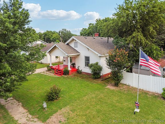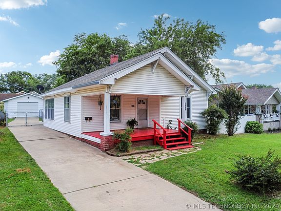 Welcome to this charming craftsman-style home nestled in the heart of Okmulgee! This delightful residence offers original 1920s charm, creating an inviting and comfortable living space. Featuring 2 spacious bedrooms and 1 well-appointed bath, this home is ideal for those seeking a cozy yet stylish home. The vinyl hardwood floors and woodwork add a touch of vintage to the interior. Step inside to find a bright and airy living room, perfect for relaxing or entertaining guests. Just off the kitchen, you'll discover a sunroom bathed in natural light, offering a serene space to enjoy your morning coffee, read a book, or simply unwind. Outside, you'll find a nicely landscaped yard, ideal for gardening or enjoying the outdoors. The charming front porch is perfect for sipping your morning coffee or watching the sunset. The roof was replaced in the spring of 2024. And you even have a detached 1 car garage! Located in a friendly neighborhood, this home is just a short distance from local shops, restaurants, and parks. Don't miss the opportunity to own a piece of Okmulgee's history!