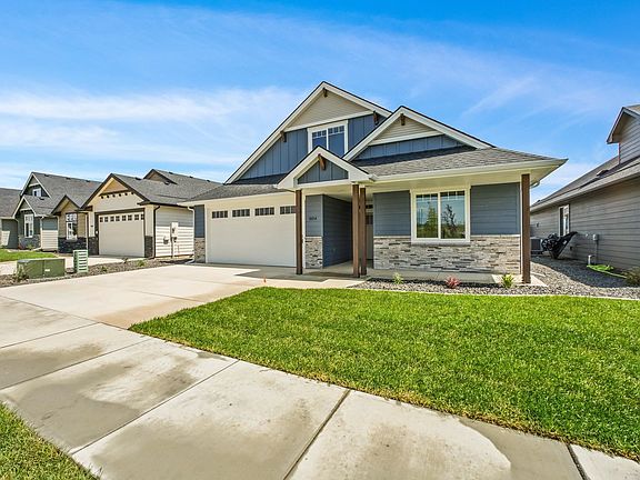 This home has it all!!! Enjoy the amenities offered at Bidwell park from this no step, main floor living home with an added bonus area and bath up! Best of all, a 5 car garage for your toys!!! Quality built by Brytech construction, this home is on a quiet, private lot that is completely landscaped with sprinklers and fence. The open, great room concept on the main floor is perfect for easy living. Oversize windows let in abundant outdoor light. The kitchen features a large island, pantry, tons of storage, hard surface countertops, soft close cabinet doors, and under counter lighting. A spacious master bedroom/bath features a large walk in shower, walk in closet, built ins and double sink. 2 additional rooms, guest bath and laundry complete the main floor. Upstairs you will find an additional guest room, office, sitting area with a bath and a view of Mt Spokane! This home is a must see!!!