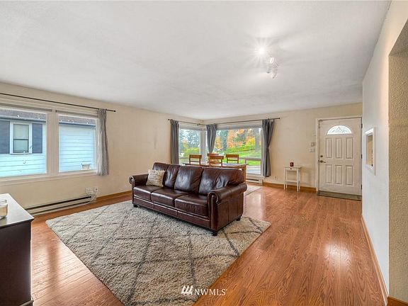 Beautiful Mid-century modern daylight rambler is nestled in the heart of Kent situated on an acre around the corner from Kent Station. Spacious living room with tons of natural light, modern tile, hardwood floors, new appliances, a newer roof, quartz counter tops and new cabinetry in the remodeled kitchen. Enjoy the enclosed patio off of the kitchen, an expansive deck, paver patio, fruit trees with peek-a-boo views of the Olympic Mountain and a 1-car garage + carport! Wow!