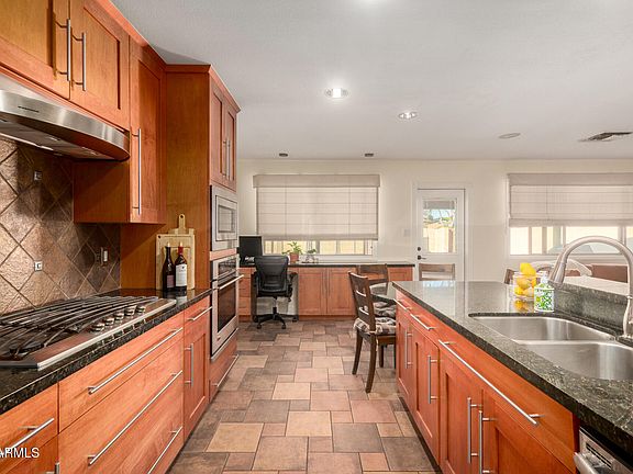 Look at this beautifully maintained home and backyard oasis with an EXCELLENT LOCATION! Featuring a desirable floor plan with plenty of space for entertaining. The welcoming living/dining room creates an inviting atmosphere, while the family room boasts a cozy fireplace & spacious kitchen. The kitchen impresses with crown molding on the cabinets, SS appliances, granite counters, an island with breakfast bar, tile backsplash, & convenient desk area. The main bedroom has a mirrored-door closet & a private ensuite with tiled shower & a dual sink vanity. Enjoy the backyard including a covered patio, pool, room to play and breathtaking sunsets. AC replaced in 2023 with transferable lifetime warranty and 220 EV charging hook-up in the garage.