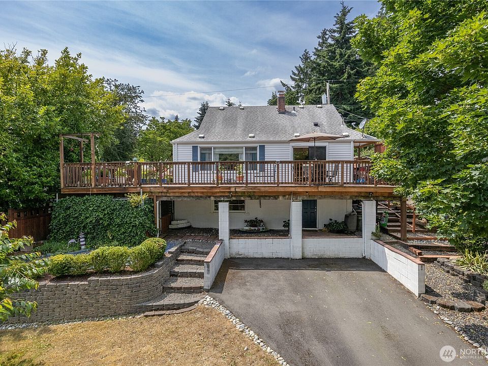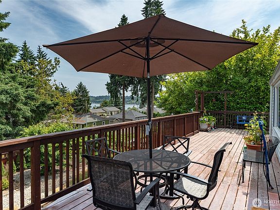 Enjoy the Views of Sinclair Inlet and Mt Rainier from the spacious deck, ideal for entertaining! New refrigerator, washer & dryer, updated laminate flooring. Main floor includes 2 bedrooms, while the upper floor boasts a bedroom/flex space with built-ins. Lower level consists of a custom space featuring map and tin walls, wood ceiling, built-ins and storage spaces that could serve as a mancave or family room and an expansive shop area with work bench, rolling carts, storage cabinets, peg board & utility sink, lots of possibilities. Gas furnace & water heater. Low-maintenance vinyl siding. Fenced yard with beautiful spaces including a garden area and dog run. Conveniently located close to PSNS, Seattle Ferry, and Highway 3.
