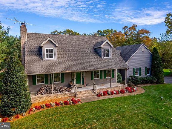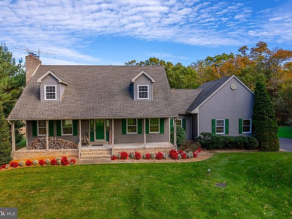 Don't miss this meticulously maintained and beautifully landscaped 3-bedroom, 3-full bath Cape Cod, nestled on a private 2.09-acre lot. Located far off the road for privacy and tranquility. With a long private driveway, lush greenery, and a 20-zone irrigation system, the grounds are not only picturesque but easy to maintain. Oversized 2-car side-entry garage with automatic openers, additional parking behind, and interior access. Newer roof (just 6 years old) and charming covered front porch – perfect spot to relax with the morning coffee. Here are some highlights you will love about this property. The property comes with 3 Primary bedroom suites. Each bedroom suite feature walk-in closets and a private en-suite bathroom. Full basement with walk-out access, high ceilings, daylight windows, and potential for finishing. Step into to a spacious ceramic-tiled entry foyer with a double coat closet and an open staircase leading to the second floor. The living room offers a cozy retreat with recessed lighting and a stunning floor-to-ceiling brick wood-burning fireplace—perfect place to snuggle up to on those cold winter nights. Adjacent to the living room, the dining room (currently used as a home office) offers flexible space for those who work remotely or formal entertaining as it was built. The kitchen features oak cabinetry, tile backsplash, double sink, ceramic tile flooring, breakfast bar for two, pantry closet, recessed lighting and all existing appliances included. The dining area opens through sliding doors out to the rear deck and patio, overlooking a lush lawn and wooded backyard—an ideal setting for barbecues, fire pits, or future pool installation (septic is located in the front yard). The rear yard also includes three wells: One for the home, one for the lawn irrigation, and one formerly used for farm irrigation. The property extends well into the woods. Back inside, Enjoy the convenience of a first-floor suite with a walk-in closet and access to a full ceramic-tiled bathroom, also accessible from the foyer for guests. A mud room/laundry combo off the kitchen provides a practical rear entrance and garage access as well as convenient 1st floor laundry. No need to go to the basement to do laundry. Upstairs, you'll find two additional oversized primary bedrooms, each stretching 25 feet and each one featuring 3 walk-in closets (Six total upstairs), and each featuring their own Private en-suite bathrooms with ceramic tile. You can't beat that, everyone gets their own suite. The extra-high basement includes daylight windows, French drain with sump pump, radon pipe, 200-amp electrical panel + sub panel, newer (2023) gas hot water heater, gas HVAC system, water treatment system, walk-out Bilco doors to the backyard, Partial Insulated block walls for future finishing. Close to schools, shopping, dining, great local restaurants, and major routes (Rt 47, Rt 40, Rt 322, and Rt 55). Easy commute: 30 minutes to Philadelphia or Delaware, 40 minutes to the Jersey Shore. This well-loved home is a rare find — offering privacy, space, and thoughtful upgrades throughout. Schedule your tour today before it’s gone!