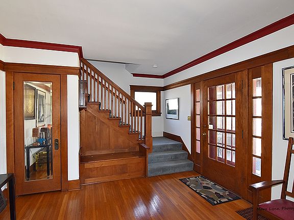 You will fall in love with this Craftsman style home at first sight! The covered front porch welcomes you to the open foyer with a built-in bench and living room with gas fireplace and extensive crown moldings and stained glass windows. The home features a separate, large dining area with built-ins and leaded glass, a family room and large, sunny kitchen with an eating area. Also on the first floor is an office with unique details including a book rack complete with a sliding ladder. Upstairs are 3 bedrooms and two updated full baths. The master is expansive with impressive windows and a sitting area. The finished attic space is a hidden gem, with a spiral staircase and beautiful wood finishes which makes a great library or game room. The home is brick on three sides and cedar on the rear. A heated two car garage with a lean-to shed has 200 amp service and plenty of storage for all of your gardening needs. A very special home on one of the most beautiful streets in Aurora.