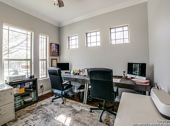 OPEN HOUSE 3/19 SUNDAY 2pm-5pm! Tons of upgrades in this Schertz 2 story home with primary bedroom and luxury ensuite downstairs. Additionally, on the main floor, you'll have private office space, separate dining or flex space, large open concept eat-in kitchen and living room that overlook the gorgeous patio, outdoor kitchen and swimming pool. Professional landscaping provides plenty of shade and privacy. Upstairs, there are 2 full bathrooms, 2 bedrooms have access thru a Jack and Jill style layout and another bedroom with its own bathroom. The upstairs area features views of the downstairs from a catwalk and a huge Gameroom. Perfect home for entertaining friends and family!