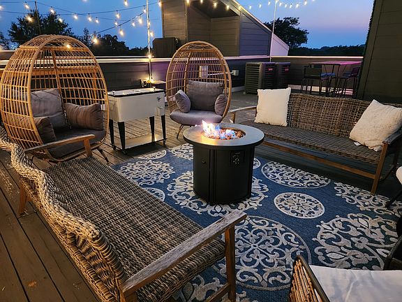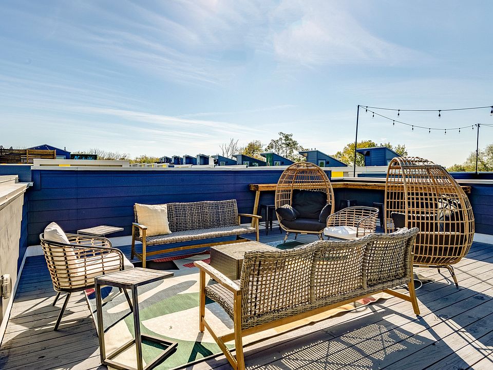 Inside, you’ll find modern finishes, designer lighting, and an open concept layout that flows effortlessly from living to dining to kitchen. Each space is thoughtfully curated to feel upscale yet comfortable. But the true showstopper? The private rooftop deck with jaw-dropping skyline views of downtown Nashville. It’s the perfect spot for pre-show cocktails, morning coffee, or simply soaking in that Music City magic.