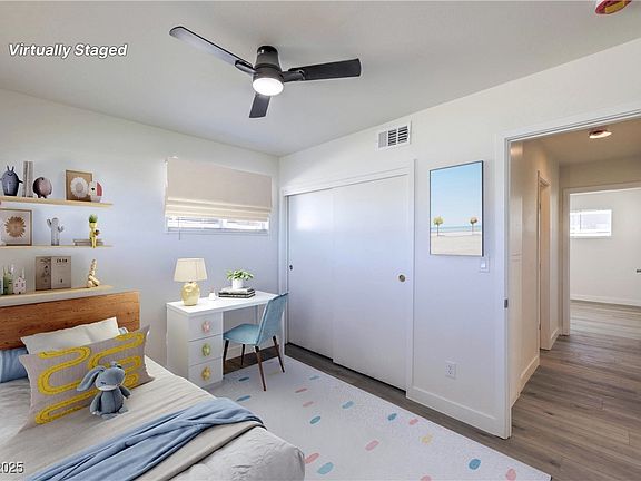 Charming newly remodeled single story home on oversized lot* 3 bedrooms w/designer ceiling fan lights & blinds*sunny kitchen w/ quartz counter tops, custom white shaker cabinetry, stainless appliances*luxury vinyl planks*upgraded modern light fixtures*spacious laundry room*Great curb appeal w/stone exterior accents w/matching paver driveway*fully landscaped front & rear w/artificial turf and spacious patio*detached workshop (no electricity) no HOA*close to parks, schools, shopping & freeway access.