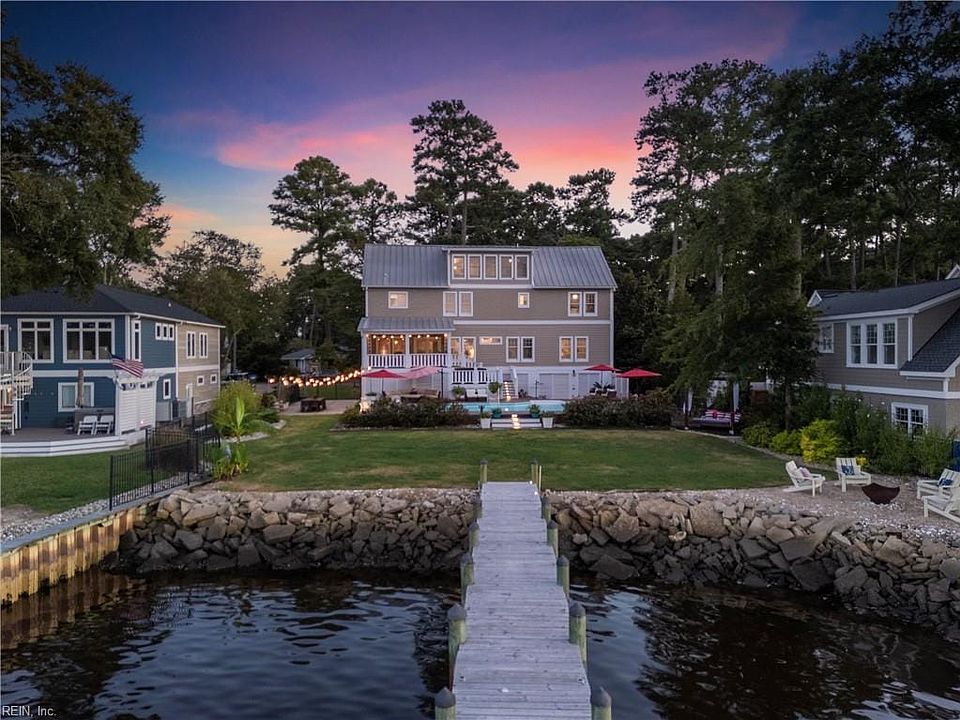Experience the pinnacle of coastal luxury with this extraordinary retreat on the Intercoastal Waterway. This exceptional home features a 10,000 lb. boat lift, jet ski lift, solar-lit dock, and floating dock, all set against a serene water backdrop. Enjoy low-maintenance living with a sleek metal roof and Trex decking. Host unforgettable gatherings or simply relax in the screened porch, saltwater pool, or unwind in the hot tub. With spectacular water views from nearly every room and multiple porches, this home perfectly blends leisure and entertainment. Inside, discover a gourmet kitchen with leathered granite counters, chic matte finish bamboo flooring, and two primary suites. Heated bathroom floors and an elevator enhance comfort and accessibility. The beautifully landscaped garden with a gardener's retreat and perennials completes this sublime deep-water sanctuary. 2024-11-25