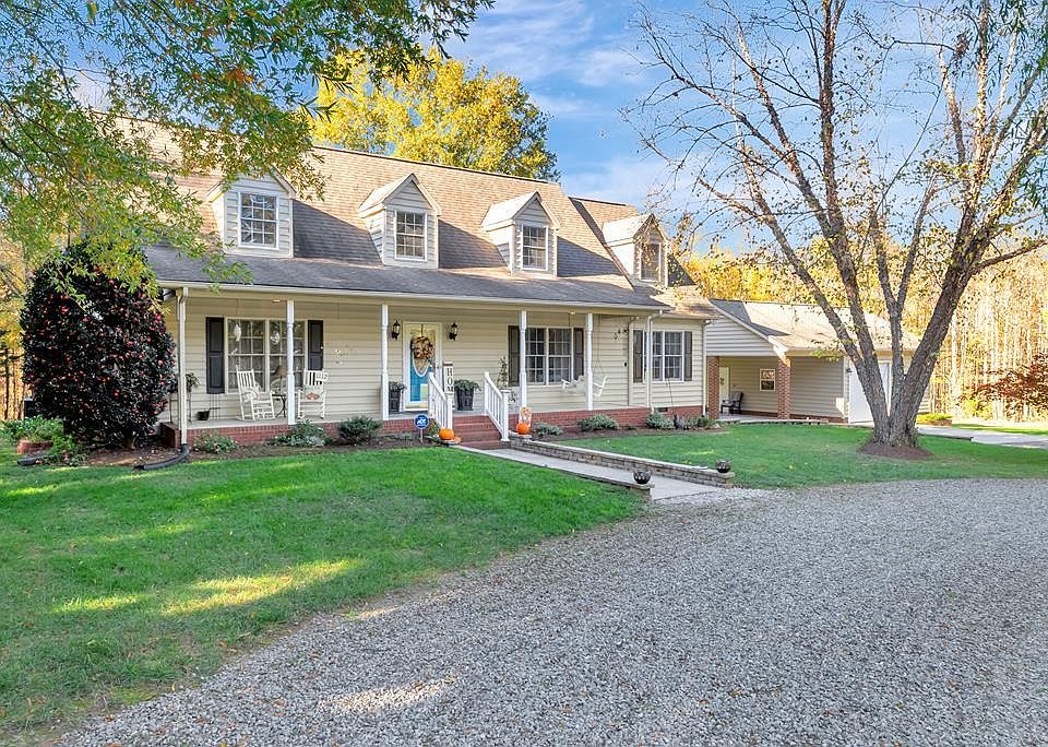 Looking for space, peace, and updates already done for you? This 4-bedroom, 3-bath beauty sits on 3.33 acres in the highly sought-after Cluster Springs school district! You'll love the cozy gas log fireplace in the family room, the brand-new granite countertops, tile backsplash, and LVP flooring in the kitchen (all updated in 2025), and the marble vanity in the primary bath. Fresh shower/tub units, vinyl porch railings, new paint, and a 1-year-young high-efficiency heat pump make this home move-in ready! Enjoy your mornings on the porch or tend to your garden and chickens in the backyard. There is also a great back deck for evening or weekend barbecues with family and friends. The property includes a 24x32 detached garage/workshop/carport and a 12x20 storage building with an 8x20 lean-to and an 18x22 metal carport—perfect for tools, hobbies, or extra parking. Tucked away on a quiet country road, this home has the space and serenity you've been searching for. Property owners are related to the listing agent.