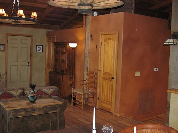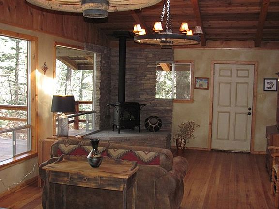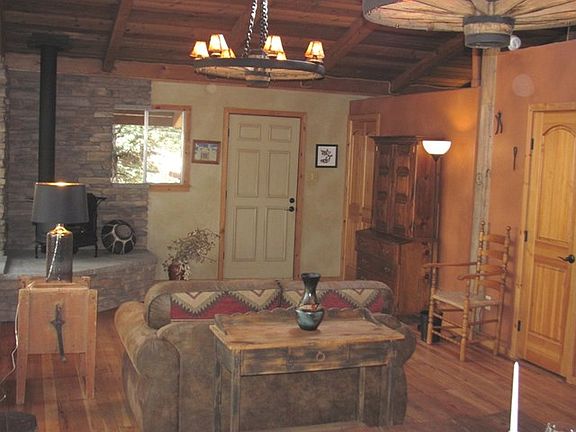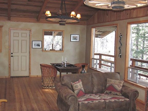 Extensively remodeled with 2 lots in one of the prettiest spots on the river in the Upper Canyon. You have unbelievable views in both directions of the river. This wonderful home has vaulted ceilings, fireplace, a gas log stove, new bathrooms & cabinets, large pantry w/ brick floor, new kitchen cabinets & hardwood floors throughout most of the home. Den area, living room area, plus a mud room that could possibly be a sleeping area. The den area could be made into an additional bedroom (to make a 3rd BR). One bedroom is large enough to accommodate both office and BR. Huge pine trees, and that great old feel of the Upper Canyon. Fully furnished upstairs with some kitchenware. Trade possible.
